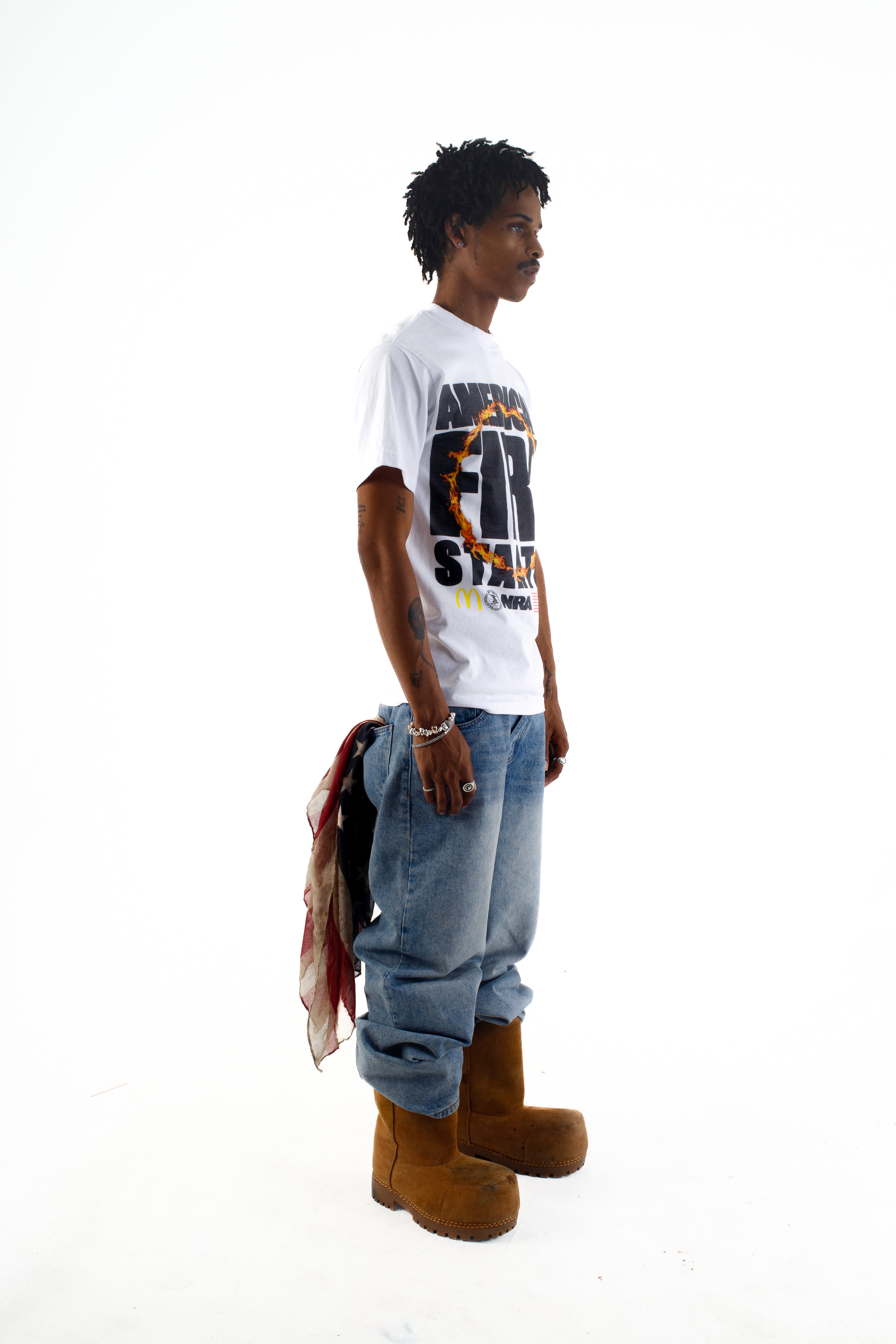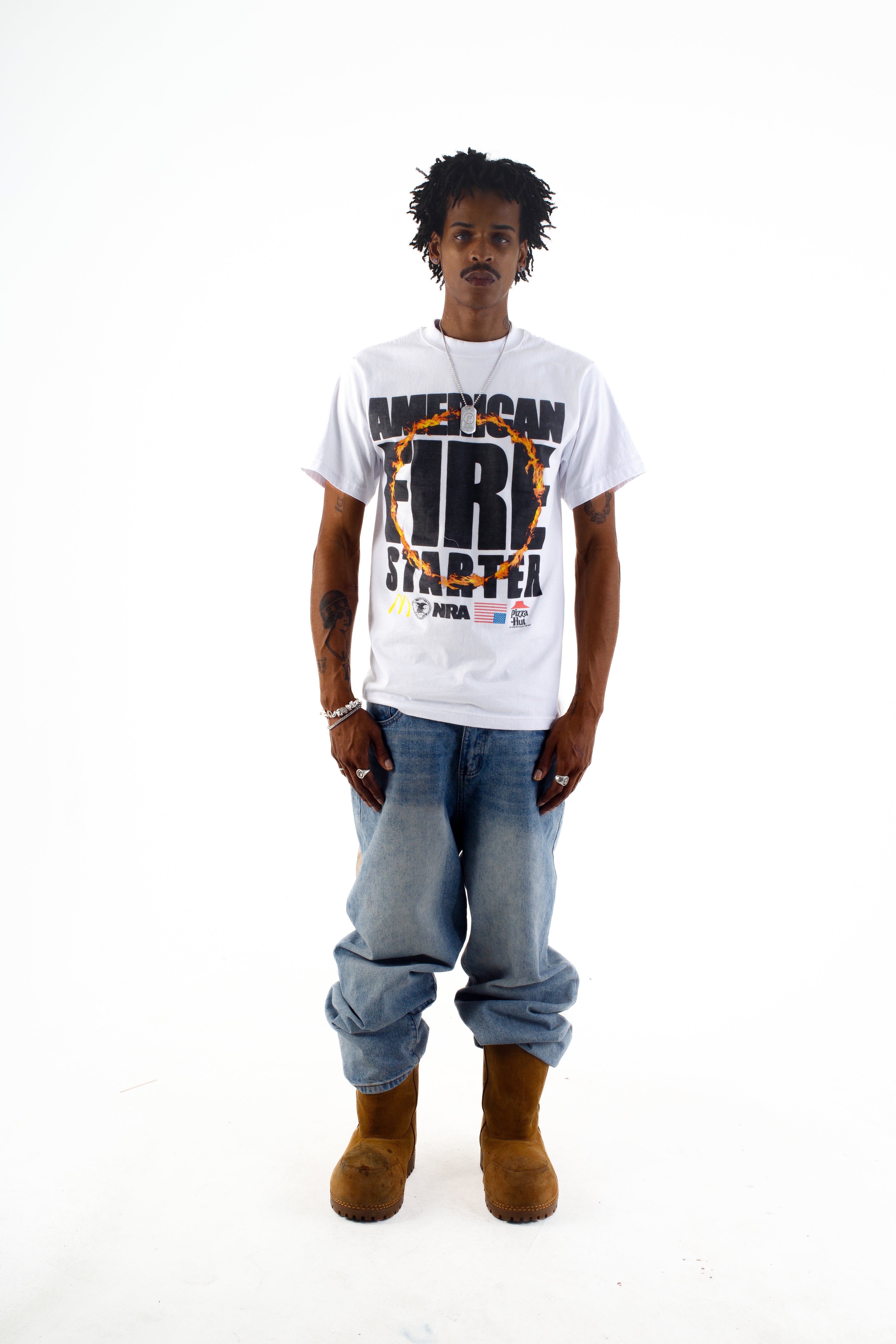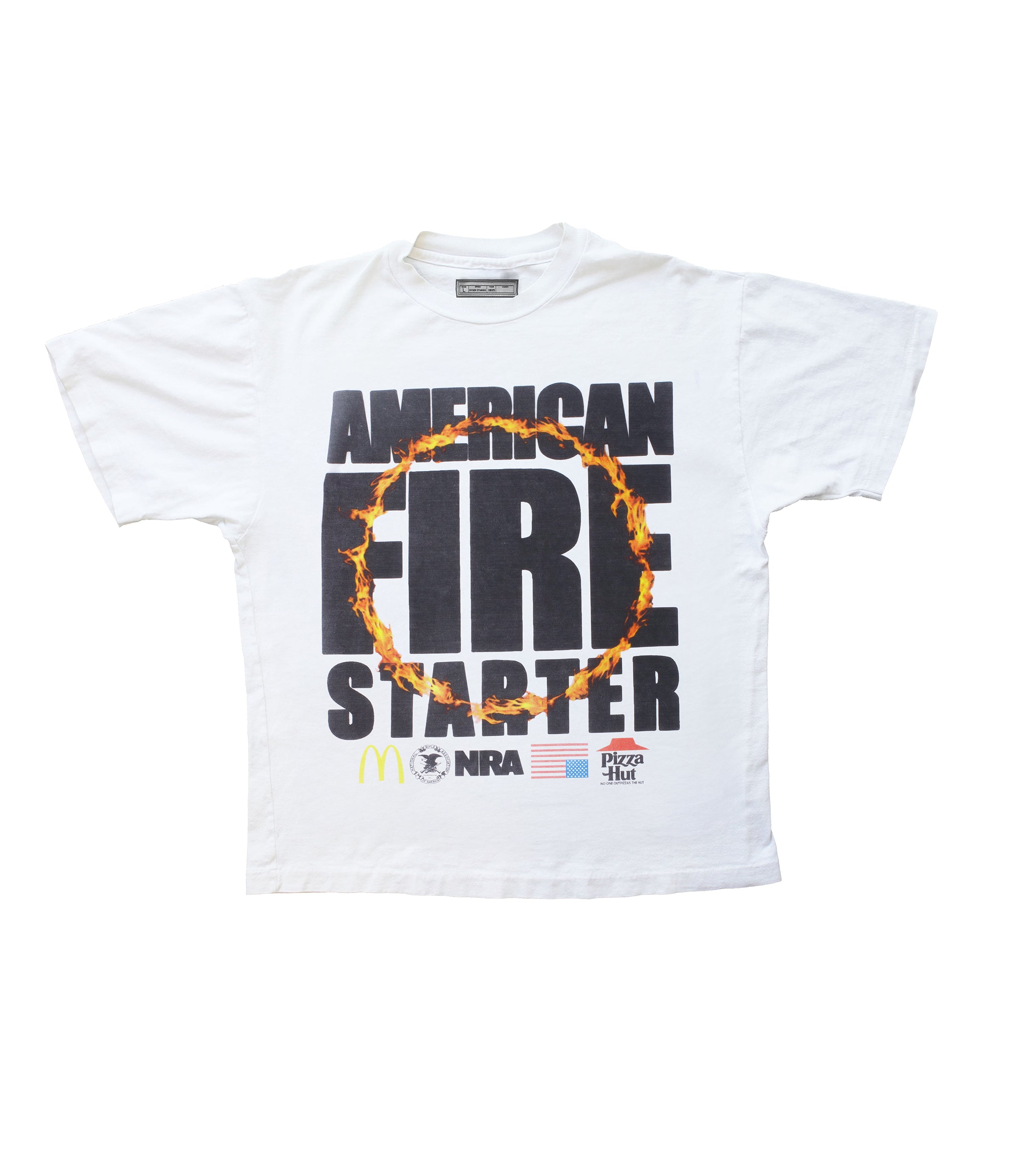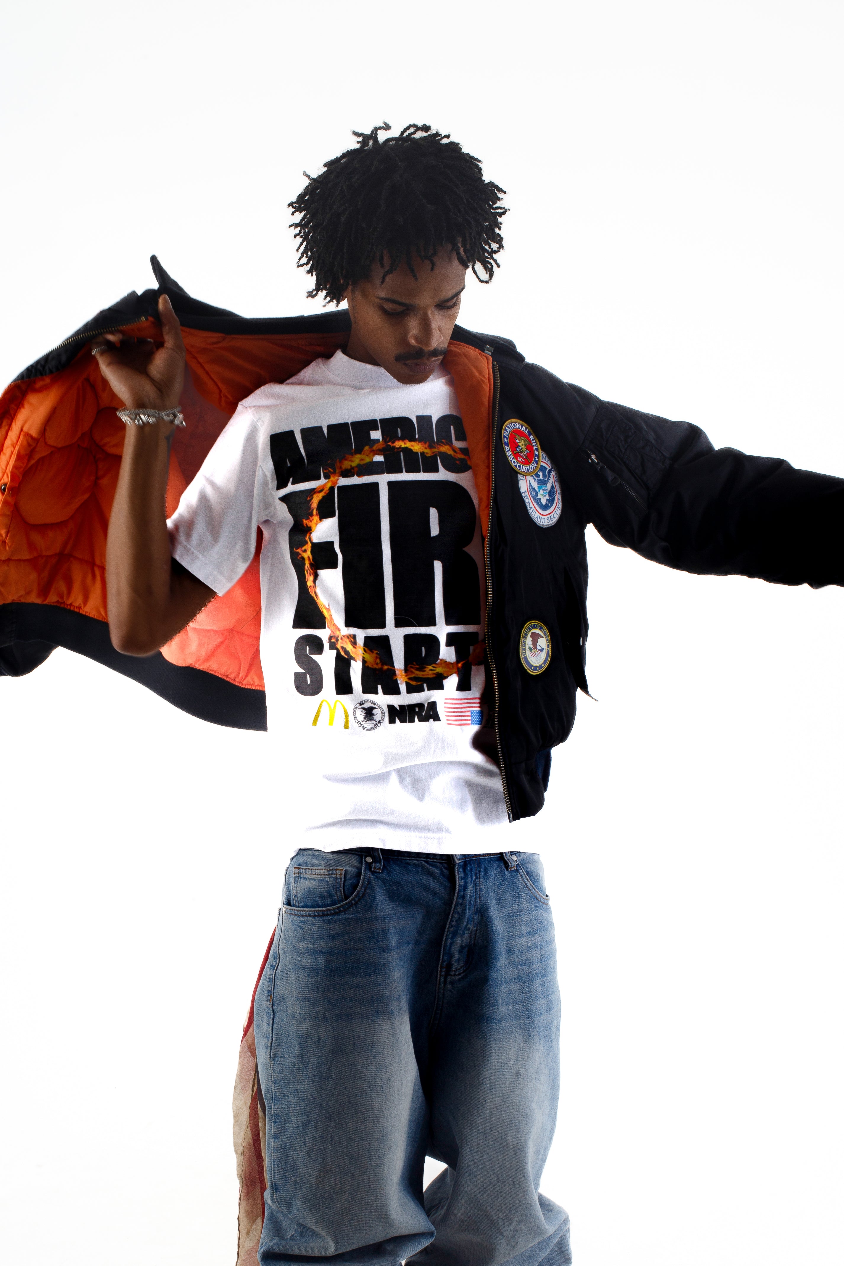 The American Fire Starter Tee distills a critique of power, examining the alignment between corporations and government in the production of mass harm. Familiar symbols are reorganized into a single, confrontational image, where branding becomes evidence rather than identity.