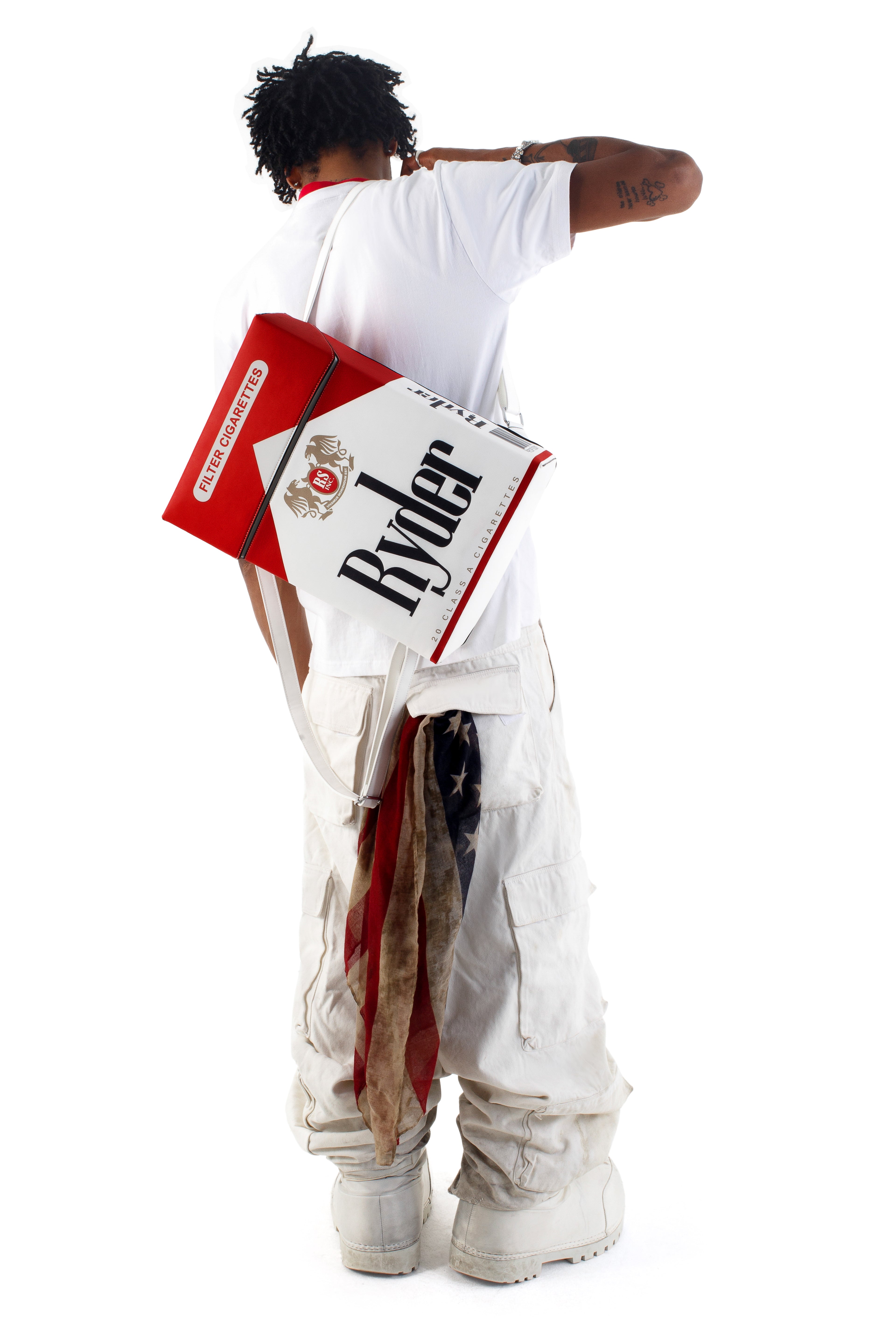 A bold reinterpretation of classic Americana, the Cowboy Killer Carryall is a high-impact statement piece made from premium vegan leather. Inspired by the iconic cigarette pack silhouette, this structured bag blends pop art provocation with practical utility.
