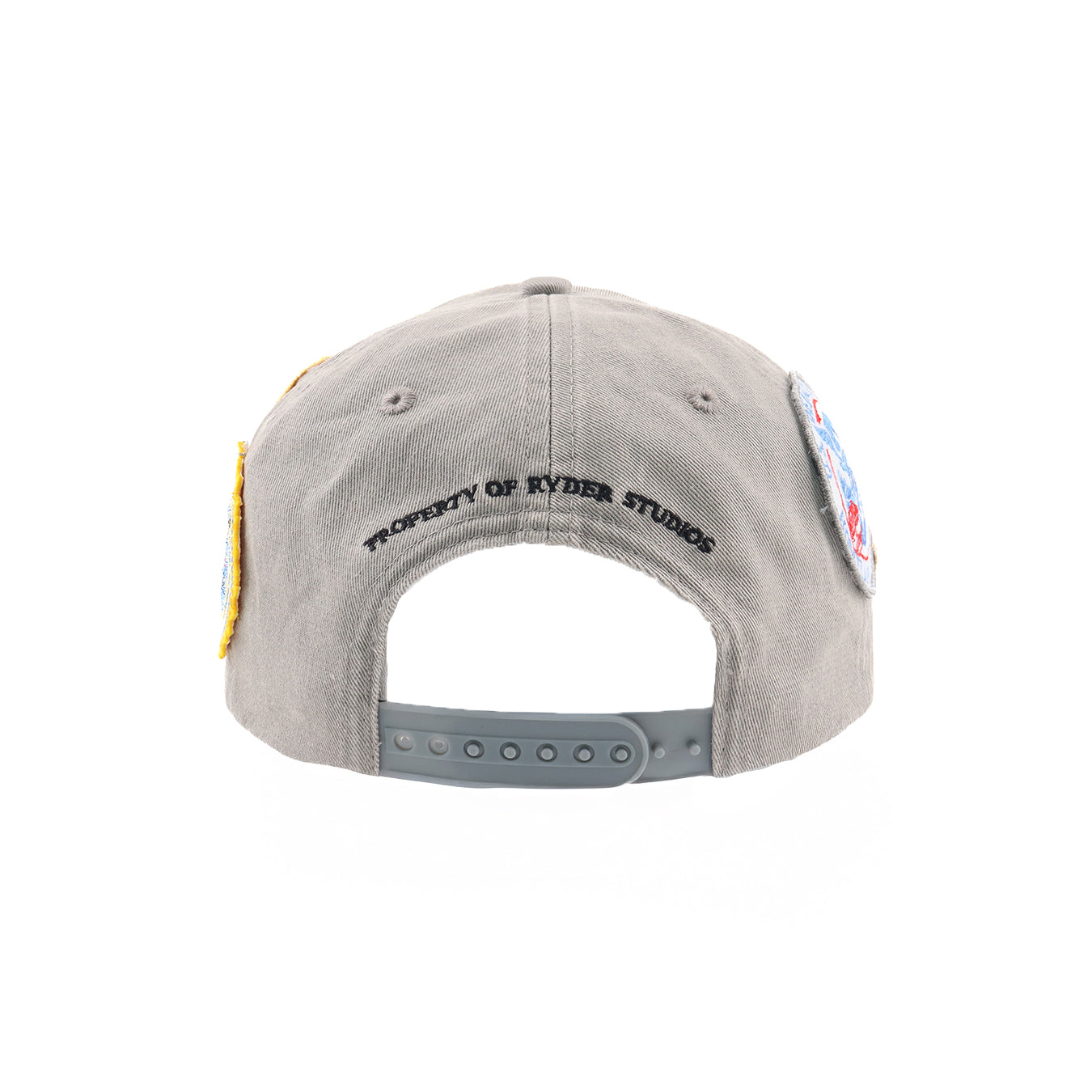 Six embroidered insignias reinterpret U.S. government seals, turning institutional symbols into reflections of exposure and irony. Across the back, PROPERTY OF RYDER STUDIOS is stitched as both signature and statement, grounding the piece within the agency of authorship.